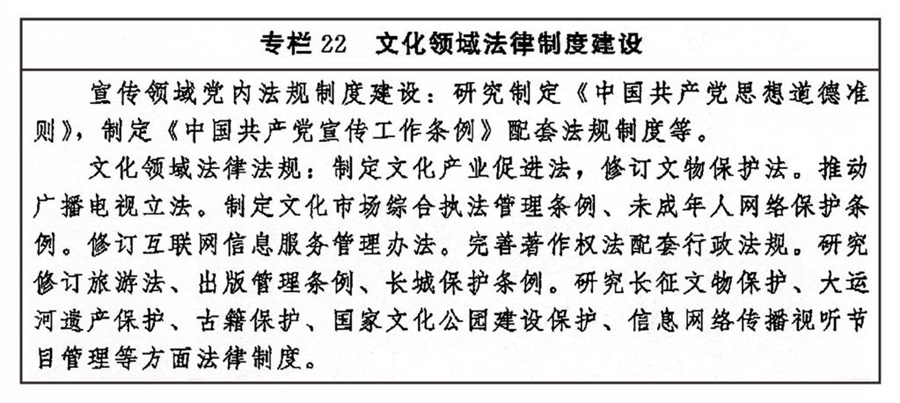 ——中國特色社會主義文化制度更加完善,文化法律法規(guī)體系和政策體系更加健全,文化治理效能進(jìn)一步提升。