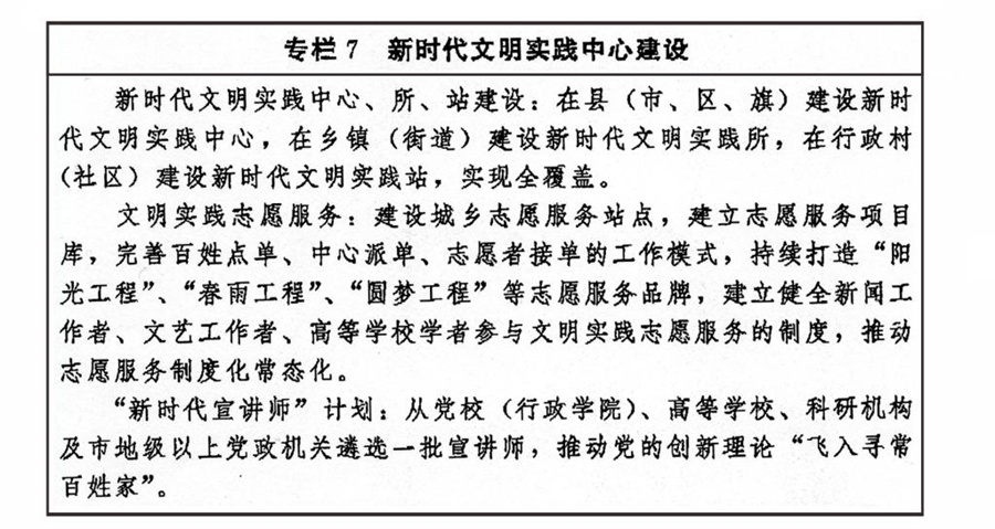 以實(shí)施文明創(chuàng)建工程為抓手,推動文明培育、文明實(shí)踐、文明創(chuàng)建不斷深入。創(chuàng)造性開展文明城市、文明村鎮(zhèn)、文明單位、文明家庭、文明校園和未成年人思想道德建設(shè)工作先進(jìn)等精神文明創(chuàng)建活動,拓展新時代文明實(shí)踐中心建設(shè)。弘揚(yáng)科學(xué)精神,深入開展愛國衛(wèi)生運(yùn)動,深化文明餐桌行動和“光盤行動”,倡導(dǎo)文明健康、綠色環(huán)保的生活方式。健全志愿服務(wù)體系,廣泛開展志愿服務(wù)關(guān)愛行動。加強(qiáng)網(wǎng)絡(luò)文明建設(shè)。