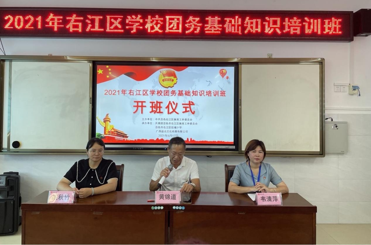 ????????為進(jìn)一步加強右江區(qū)學(xué)校團(tuán)干隊伍業(yè)務(wù)水平,增強履職盡責(zé)能力,全面提升新任團(tuán)干的業(yè)務(wù)理論、工作技能和創(chuàng)新能力,更好地開展共青團(tuán)工作,近日,百色市右江區(qū)教育局主辦,百色市右江區(qū)共青團(tuán)、廣西益眾文化傳媒有限公司、百色市拉域小學(xué)聯(lián)合承辦了2021年右江區(qū)學(xué)校團(tuán)務(wù)基礎(chǔ)知識培訓(xùn)班,來自右江區(qū)37所中小學(xué)、幼兒園的團(tuán)干參加本次培訓(xùn)。