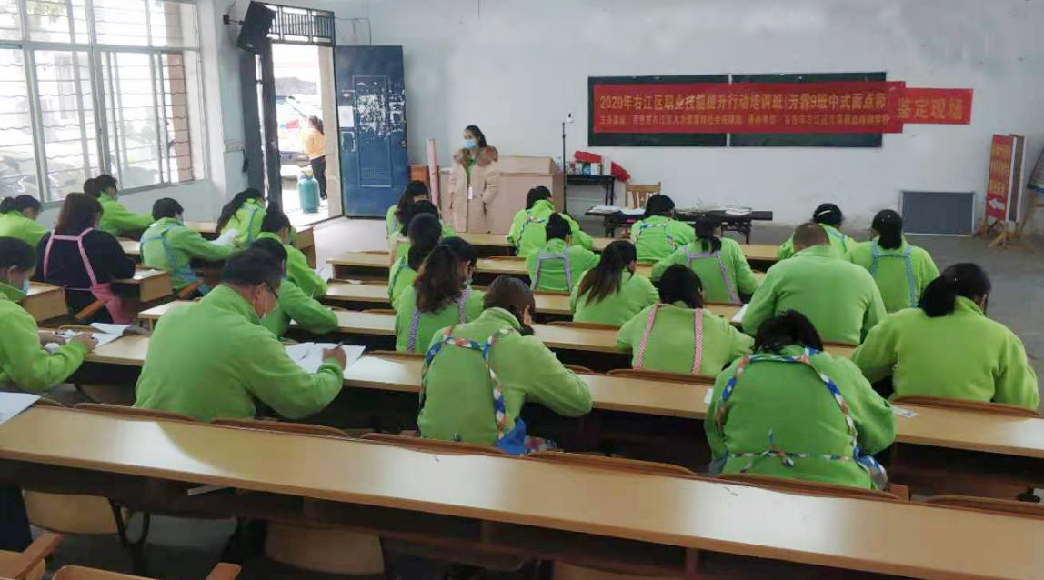 ????????近日,廣西百色益嘉職業(yè)技能培訓(xùn)學(xué)校開展了2020年右江區(qū)職業(yè)技能提升行動培訓(xùn)班(中式面點師)初級工鑒定考核,來自益眾托管校區(qū)共33名學(xué)員參加。