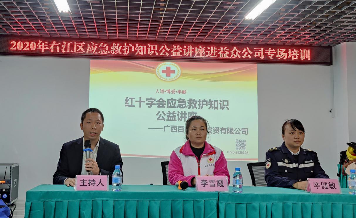 ????????為普及應(yīng)急救護知識,提高員工安全防范意識、自救互救能力和應(yīng)急救護技能,12月2日、6日,益眾公司邀請百色市右江區(qū)紅十字會到公司開展急救知識技能培訓(xùn),公司百余名管理人員、有關(guān)直屬班組400余人參加培訓(xùn)。