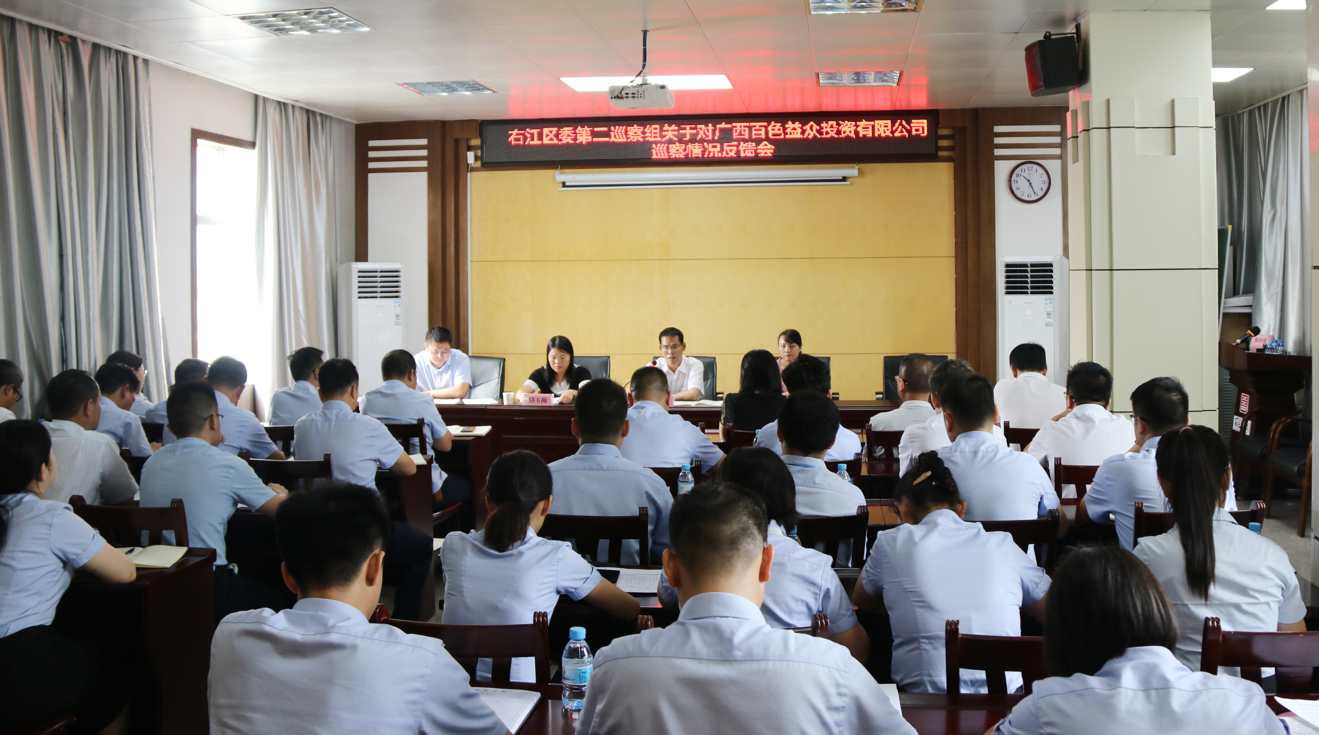 ???????9月17日上午,右江區(qū)委第二巡察組對廣西百色益眾投資有限公司巡察情況反饋會議在益眾公司辦公樓7樓會議室召開。區(qū)委第二巡察組組長黃梅艷在會上反饋巡察意見,益眾公司總經(jīng)理趙家臣主持會議并作表態(tài)發(fā)言。