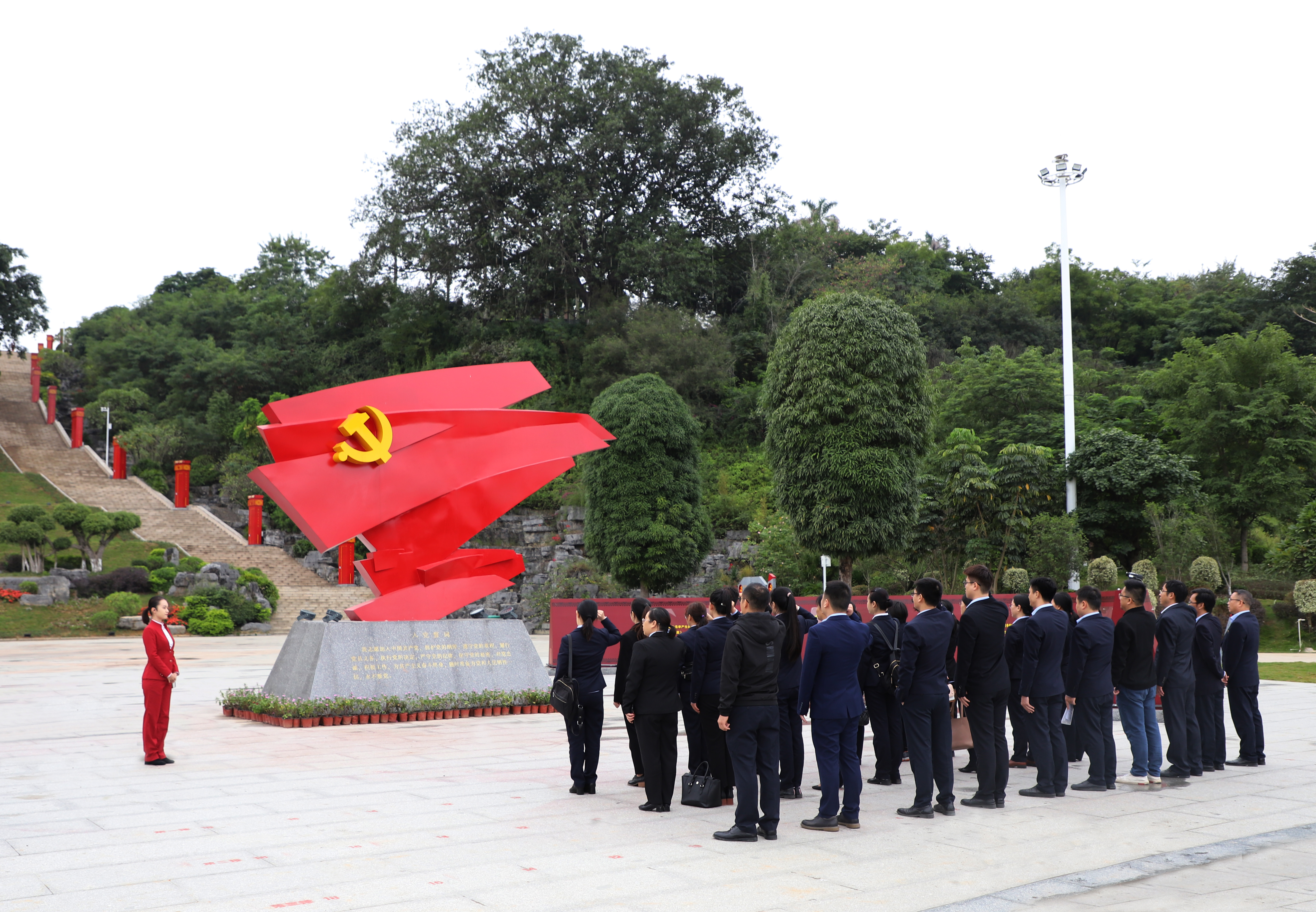 在主題園的初心廣場(chǎng),公司黨支部書記岑文帶領(lǐng)大家重溫了入黨誓詞。隨后,到百年黨史臺(tái)階、新時(shí)代廣場(chǎng)、百色精神園、使命廣場(chǎng)參觀學(xué)習(xí),觀看影像音頻、歷史圖片等。一幅幅照片、一個(gè)個(gè)場(chǎng)景,生動(dòng)再現(xiàn)了百色起義先烈英勇奮斗的光輝歲月,全面展示了中國(guó)共產(chǎn)黨從新民主主義革命時(shí)期到中國(guó)特色社會(huì)主義新時(shí)代,一代又一代中國(guó)共產(chǎn)黨人為實(shí)現(xiàn)“初心”矢志不渝,砥礪奮進(jìn)的偉大歷程,在場(chǎng)的領(lǐng)導(dǎo)干部、黨員無(wú)一不為深深根植于優(yōu)秀傳統(tǒng)文化之中的中華民族精神所震撼。