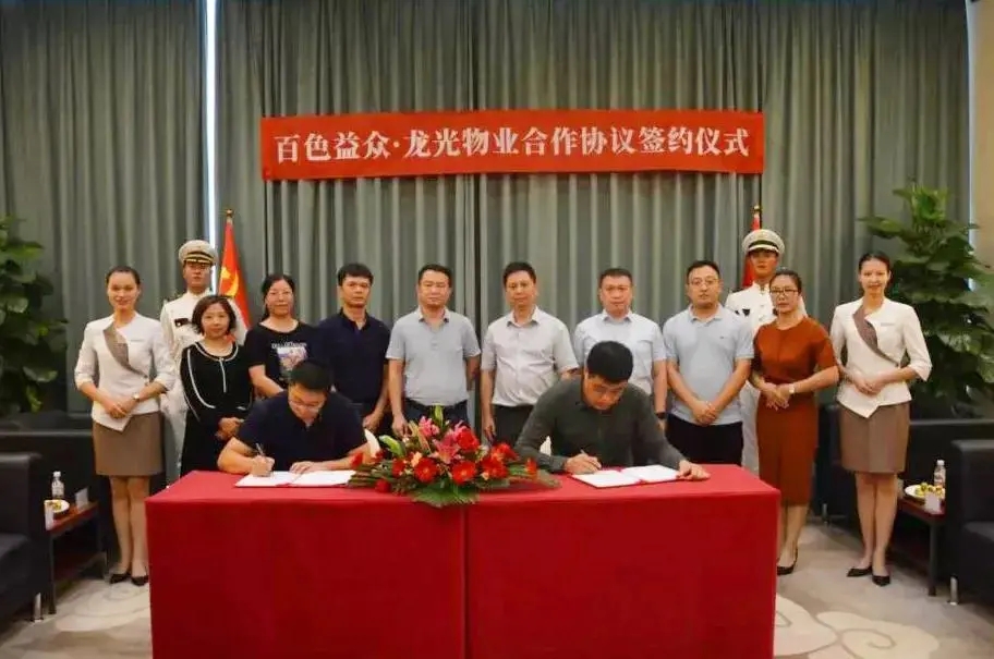 ????????雙方就共同設立的合作經(jīng)營公司——廣西龍光益眾物業(yè)服務有限公司達成了合作意向。雙方公司代表簽署了合作協(xié)議,雙方領導共同見證了合作的起點。