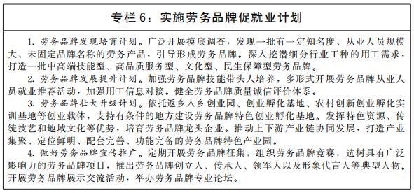 穩(wěn)定和擴(kuò)大農(nóng)村勞動力外出就業(yè)規(guī)模。廣泛開展區(qū)域間勞務(wù)協(xié)作,健全勞務(wù)輸入集中區(qū)域與勞務(wù)輸出省份對接協(xié)調(diào)機(jī)制,加強(qiáng)勞動力跨區(qū)域精準(zhǔn)對接,發(fā)展勞務(wù)組織和經(jīng)紀(jì)人,有序組織輸出地農(nóng)村勞動力外出務(wù)工。培育一批有地域特色、行業(yè)特征、技能特點(diǎn),帶動農(nóng)村勞動力就業(yè)效果好的勞務(wù)品牌。實(shí)施農(nóng)民工素質(zhì)提升工程,推進(jìn)新生代農(nóng)民工職業(yè)技能提升計(jì)劃。創(chuàng)建一批農(nóng)村勞動力轉(zhuǎn)移就業(yè)示范縣。