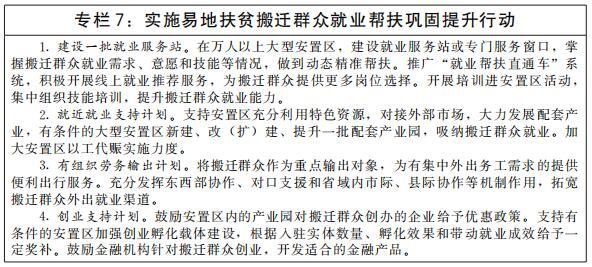 穩(wěn)定脫貧人口就業(yè)。健全脫貧人口、農(nóng)村低收入人口就業(yè)幫扶長效機(jī)制,保持脫貧人口就業(yè)領(lǐng)域的扶持政策、資金支持、幫扶力量總體穩(wěn)定。健全有組織勞務(wù)輸出工作機(jī)制,將脫貧人口作為優(yōu)先保障對象,穩(wěn)定外出務(wù)工規(guī)模。支持脫貧地區(qū)大力發(fā)展當(dāng)?shù)貎?yōu)勢特色產(chǎn)業(yè),繼續(xù)發(fā)揮就業(yè)幫扶車間、社區(qū)工廠、衛(wèi)星工廠等就業(yè)載體作用,為脫貧人口創(chuàng)造就地就近就業(yè)機(jī)會。聚焦國家鄉(xiāng)村振興重點(diǎn)幫扶縣、易地扶貧搬遷安置區(qū),積極引進(jìn)適合當(dāng)?shù)厝罕娋蜆I(yè)需求的勞動密集型、生態(tài)友好型企業(yè)(項(xiàng)目),增加本地就業(yè)崗位,組織專項(xiàng)就業(yè)服務(wù)活動實(shí)施集中幫扶。