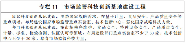 加強科技支撐體系建設。鼓勵市場監(jiān)管領域科研創(chuàng)新,加強市場監(jiān)管重點領域關鍵技術攻關和先進裝備研制,布局一批國家和部門科技創(chuàng)新基地。重點推進中國標準化研究院國家標準館建設工程和昌平實驗基地二期建設工程、中國計量科學研究院實驗基地二期建設工程、國家食品質量安全檢(監(jiān))測能力建設工程、國家消費品質量安全風險監(jiān)測預警能力建設工程等建設,全面提升市場監(jiān)管科技支撐能力。