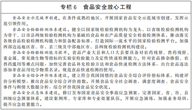 加強食品安全源頭治理。加強食品全鏈條質量安全監(jiān)管,推進食品安全放心工程建設攻堅行動,加大重點領域食品安全問題聯(lián)合整治力度。提高糧食收儲質量,防止不符合食品安全標準的糧食流入口糧市場和食品生產(chǎn)企業(yè)。加快制修訂農(nóng)藥殘留、獸藥殘留、重金屬、食品污染物、致病性微生物等食品安全通用標準,推進產(chǎn)業(yè)發(fā)展和監(jiān)管急需的食品安全基礎標準、產(chǎn)品標準、標簽標準、配套檢驗方法標準制修訂,完善食品添加劑、食品相關產(chǎn)品等標準。加快食品相關標準樣品研制。加強進口食品安全監(jiān)管,嚴防輸入型食品安全風險。實施農(nóng)產(chǎn)品原產(chǎn)地追溯促進行動,打造追溯管理規(guī)范、市場機制成熟、帶動能力強的農(nóng)產(chǎn)品追溯標桿企業(yè),推動全程追溯協(xié)作和示范推廣。