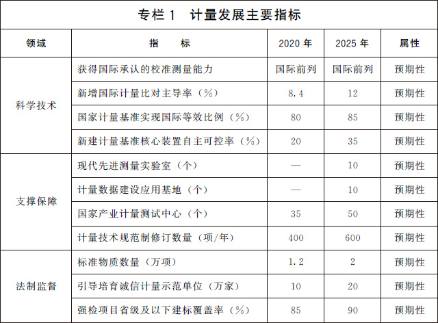 (三)發(fā)展目標(biāo)。到2025年,國(guó)家現(xiàn)代先進(jìn)測(cè)量體系初步建立,計(jì)量科技創(chuàng)新力、影響力進(jìn)入世界前列,部分領(lǐng)域達(dá)到國(guó)際領(lǐng)先水平。計(jì)量在經(jīng)濟(jì)社會(huì)各領(lǐng)域的地位和作用日益凸顯,協(xié)同推進(jìn)計(jì)量工作的體制機(jī)制進(jìn)一步完善。
